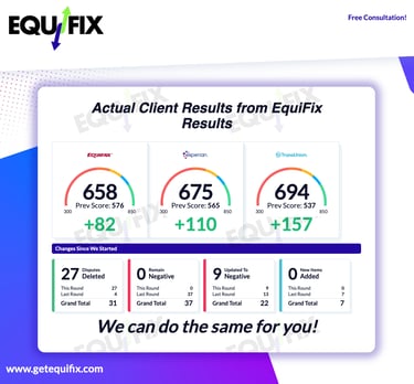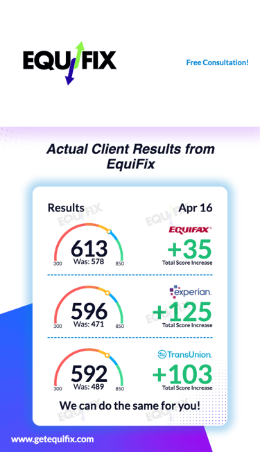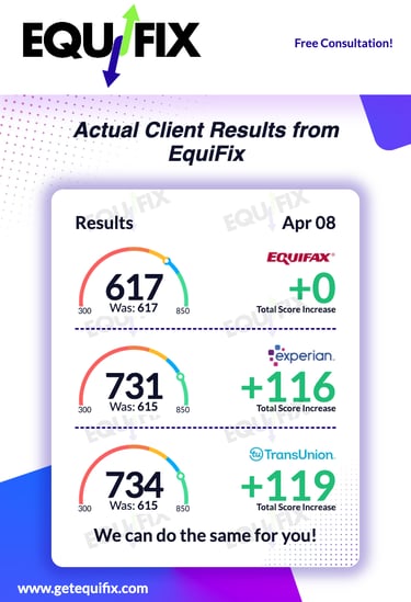 "I love the care and knowledge equifix brought to my family's credit situation. We had a very unique circumstance that Andrae was able to fix in a short amount of time. Resulting in my son financing a vehicle in solely his name. As well as raising my scores significantly. I would recommend his expertise to the anyone that wants to understand credit and how it works."